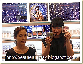 I attend the Tsumori Chisato X Shu Uemura Christmas Collection Members party at Tangs Orchard. Sophia, Shu Uemura Make Up Artist demonstrated the use of the Christmas Collection on the model.