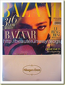 Receive HAAGEN-DAZS S$20 Gift Voucher and a Haagen-Dazs gold spoon with every purchase of Harper’s Bazaar Magazine October Issue (S$5.00) at Kinokuniya Book Store. The voucher is valid until 31st December at all Haagen-Dazs Store.