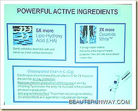 - Vitamin Cg - Double whitening effect as it reduces melanogenesis and prevents UV-induced pigmentation providing all day protection.